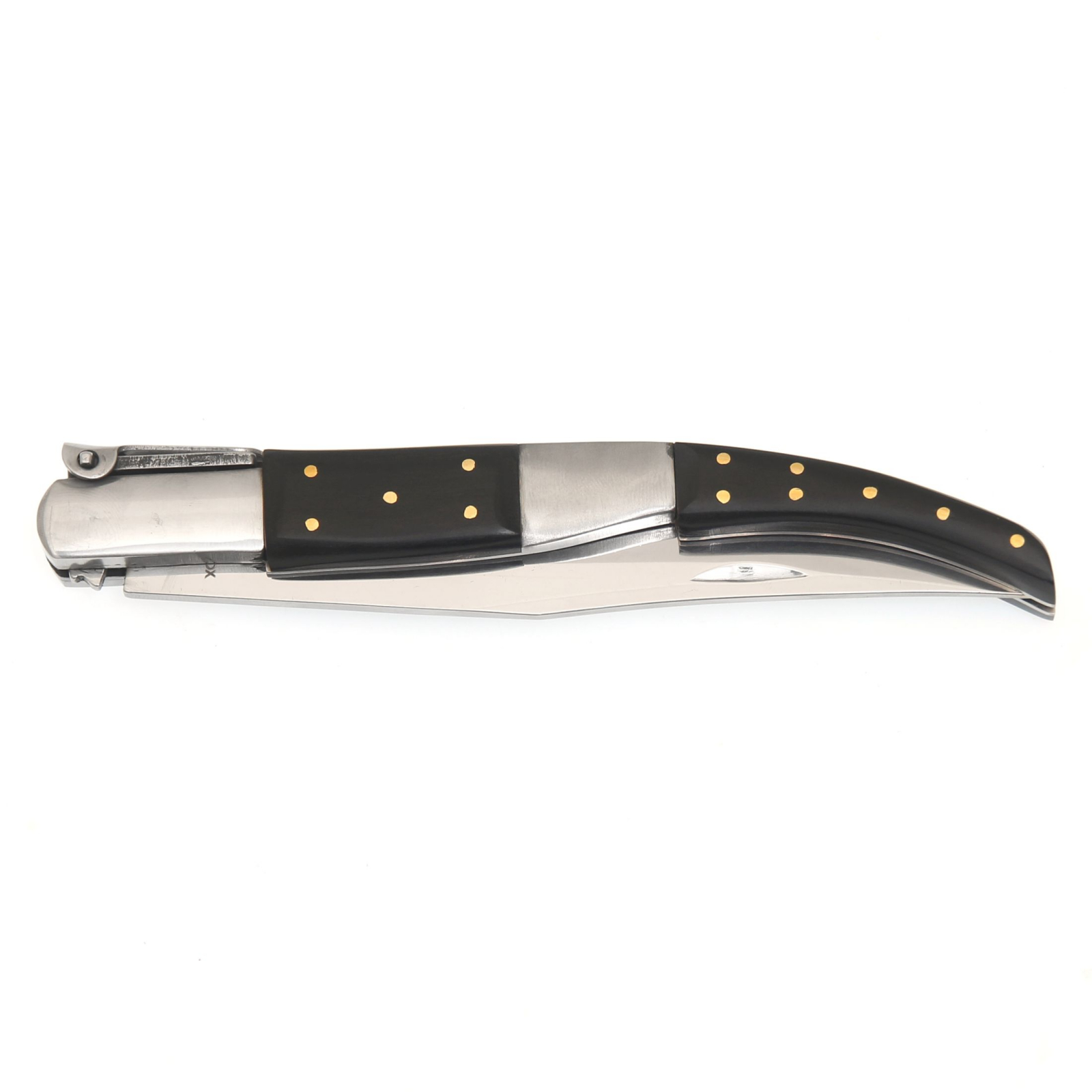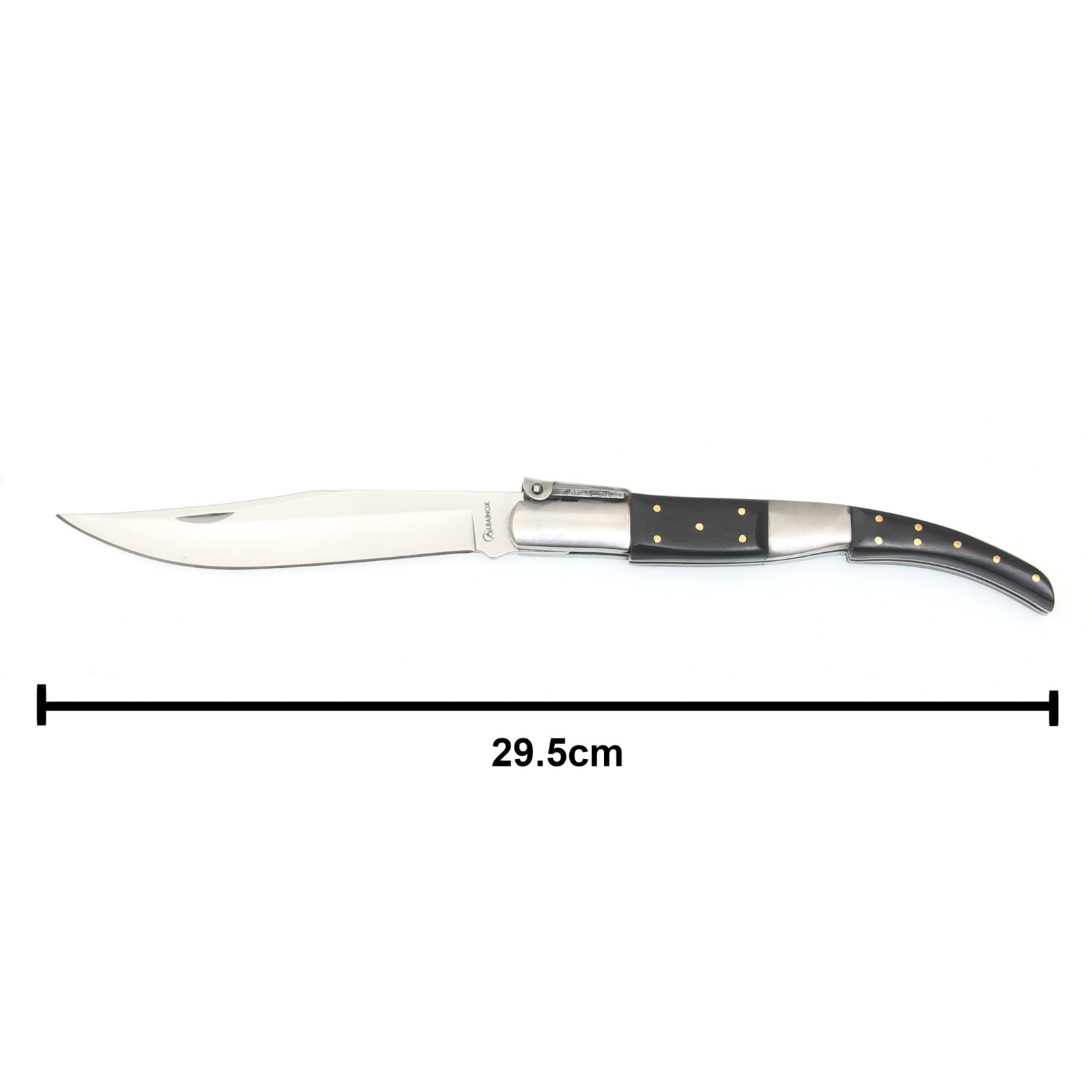 Modelul Arabe se remarcă prin detaliile decorative specifice, fiind potrivit atât pentru pasionații de bricege spaniol tradiționale, cât și pentru cei care caută un cuțit clasic, cu personalitate. Sistemul de deschidere cu sunet specific de crichet completează experiența autentică a unui briceag spaniol veritabil.