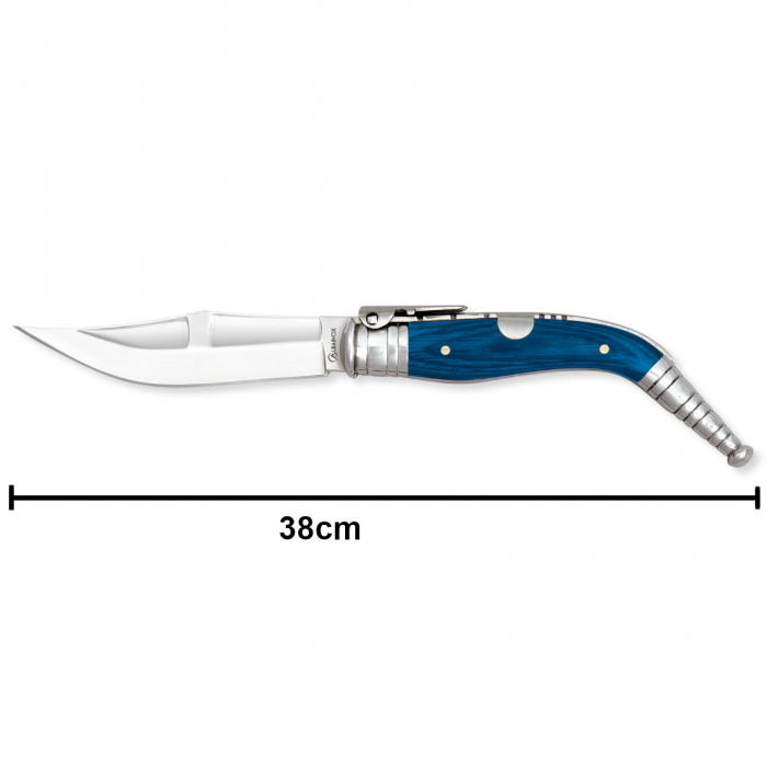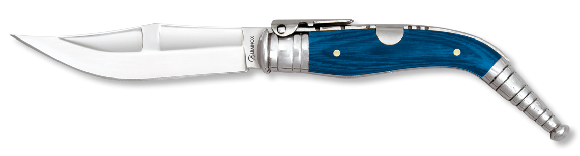 Adaugă o pată de culoare și rafinament în colecția ta cu Briceagul Bandolera Albainox, varianta cu mâner din lemn albastru – o reinterpretare modernă a tradiției spaniolă. Eleganța culorii asupra texturii lemnoase oferă o estetică distinctă și un sentiment autentic, ideal pentru utilizatorii care apreciază obiectele frumos lucrate.