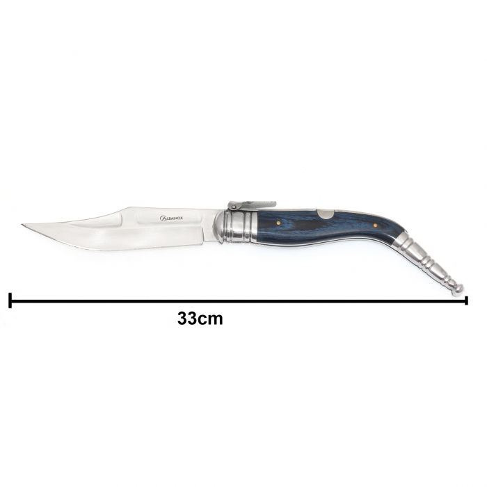 Modelul Bandolera din lemn este apreciat de pasionații de outdoor, colecționari sau cei care doresc un obiect cu valoare estetică și practică. Mecanismul tradițional oferă siguranță în utilizare, iar finisajul din lemn masiv îl transformă într-o piesă de rezistență – un briceag care vorbește despre gusturi rafinate și pasiune pentru autentic.