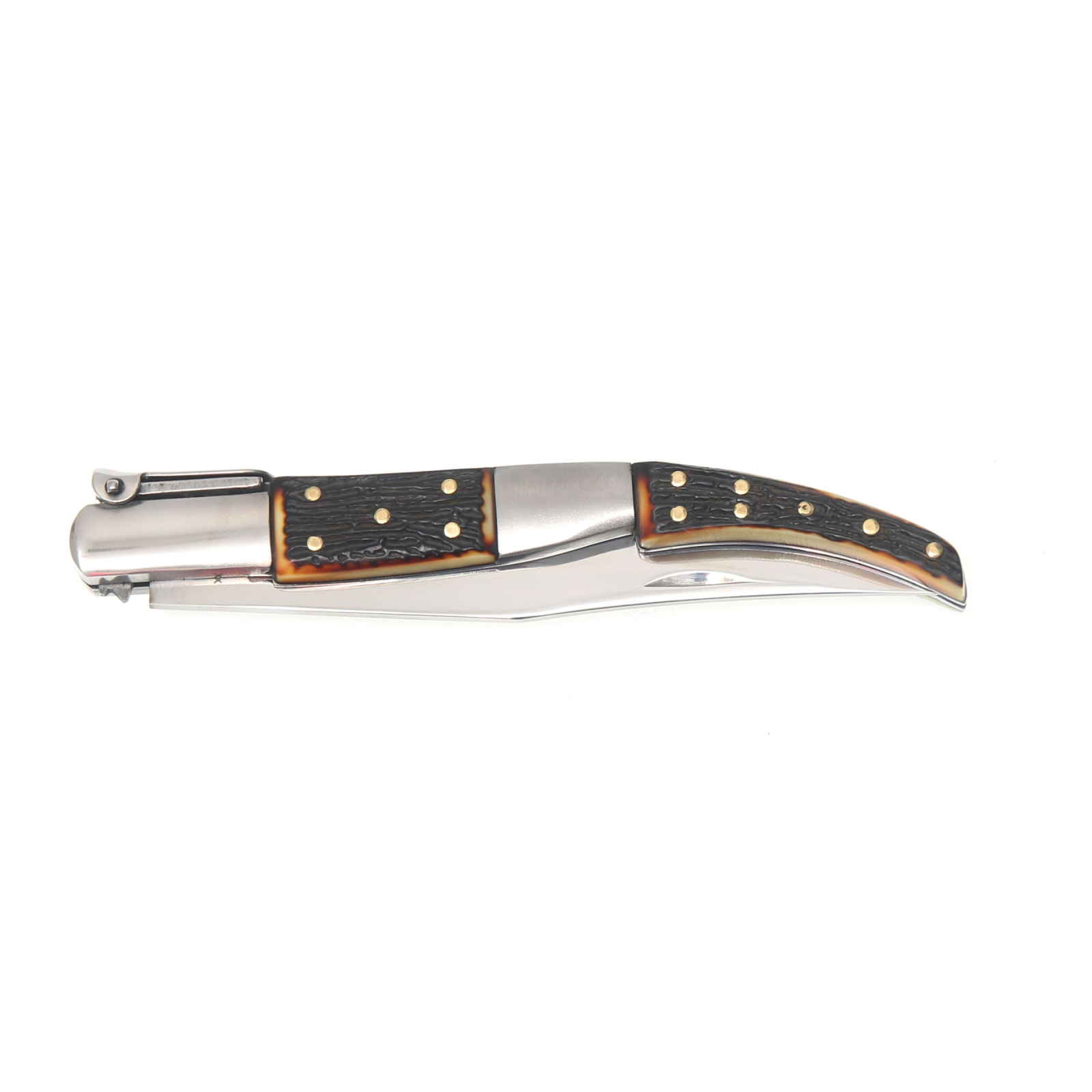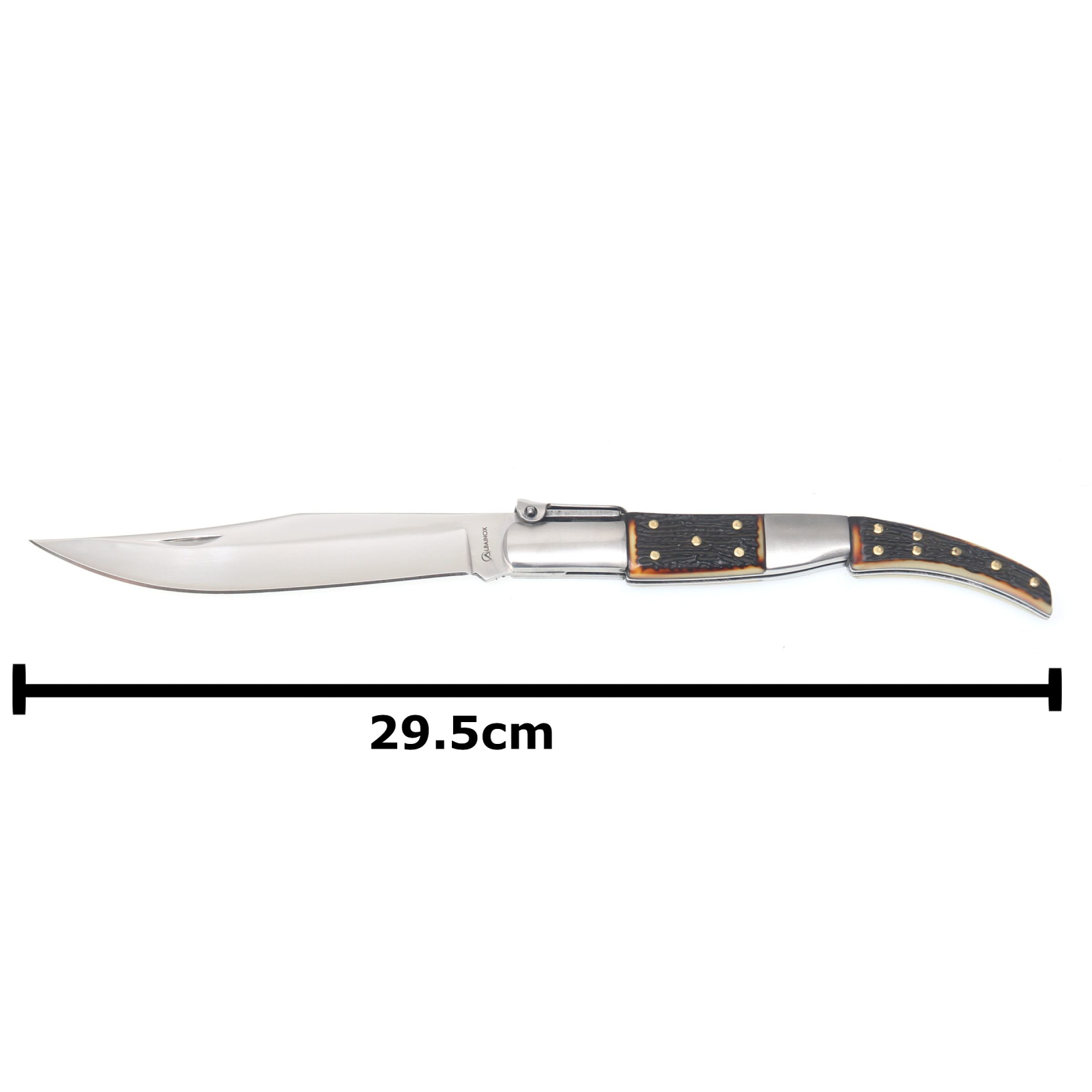 Modelul Arabe se remarcă prin detaliile decorative specifice, fiind potrivit atât pentru pasionații de bricege spaniol tradiționale, cât și pentru cei care caută un cuțit clasic, cu personalitate. Sistemul de deschidere cu sunet specific de crichet completează experiența autentică a unui briceag spaniol veritabil.